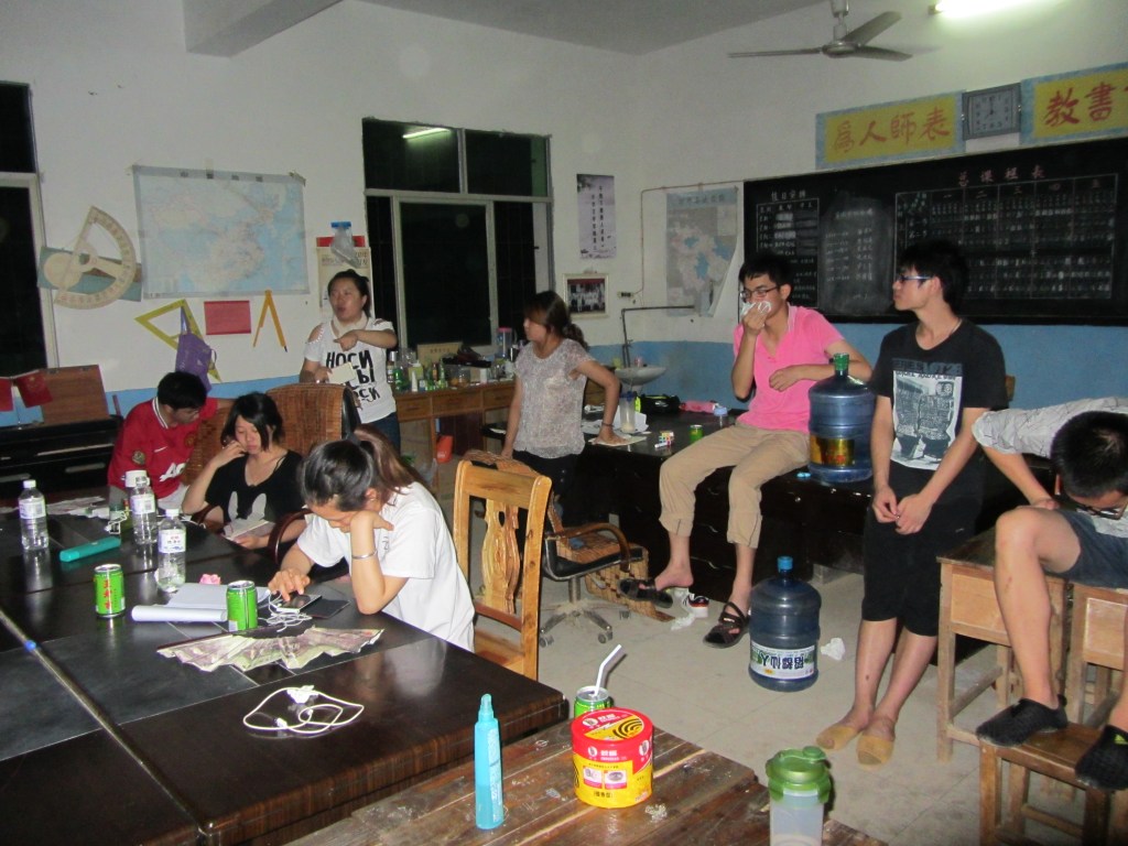 每天晚上,我们就挤在教室办公室里开会,讨论,和睡觉。12人的大通铺,和散落在各个角落里的桌子,地铺,睡袋都是我们睡觉的地方。