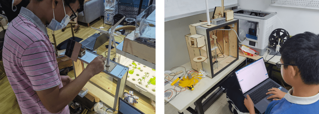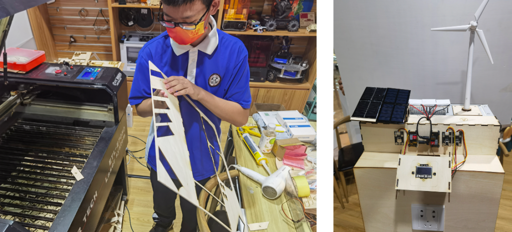- 使用激光切割固定舵机以及其他元器件,使用掌控板结合传感器来检测电流电压变化以及发电情况。