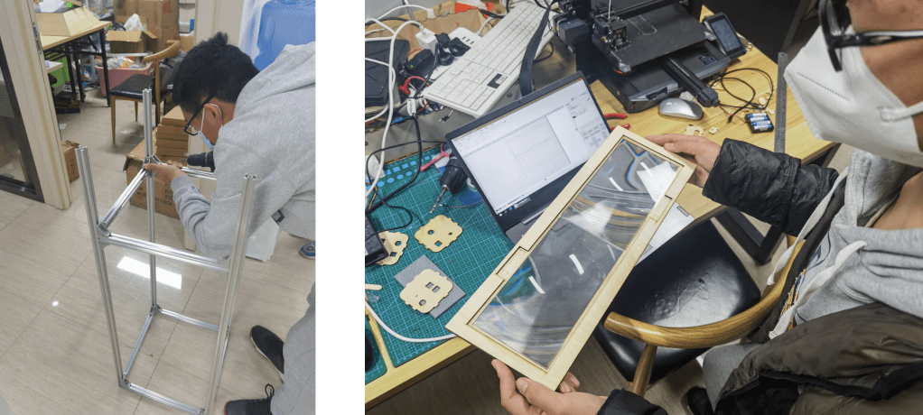 - 设计第1代外观,使用金属方框将所有结构容纳进去,并配合三脚架使用。