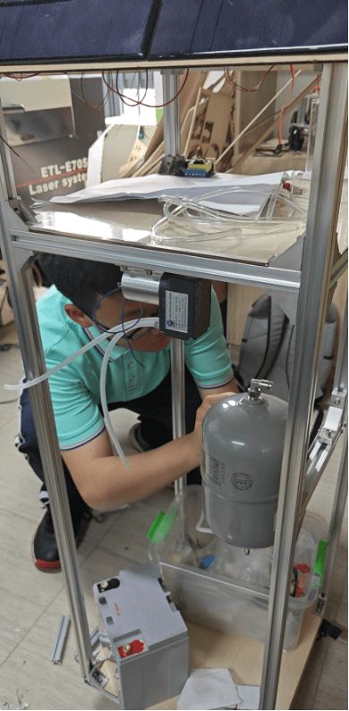 - 设计空间位置:包括电解装置,气罐,气泵,电池,继电器,菲涅尔透镜,垂直风力发电机,太阳能板,散热铜管,市电插座等结构的位置。