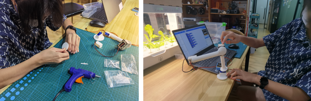 5.切割设计和制作机械臂手抓部分,并完成在机器人上的安装