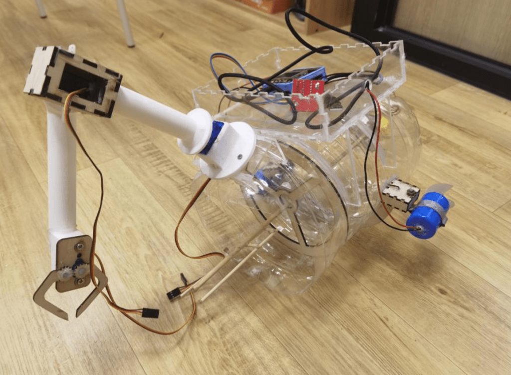 3.可以利用人工智能识别垃圾的位置,并利用机械臂清理垃圾。