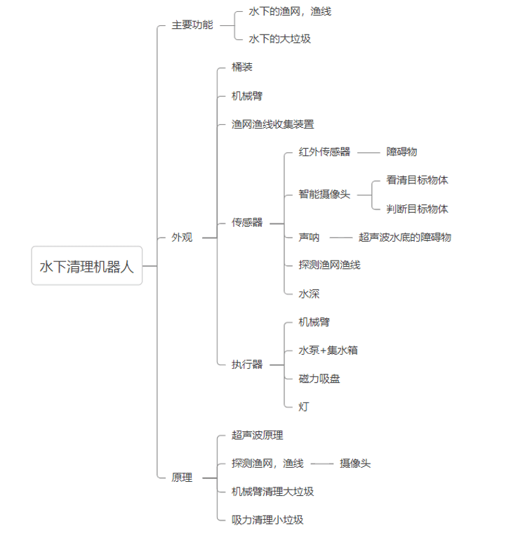 一是清理水下的渔网、渔线; 二是清理水下悬浮、较大的垃圾。 三能遥控、自主运行、识别夹取和存储垃圾。