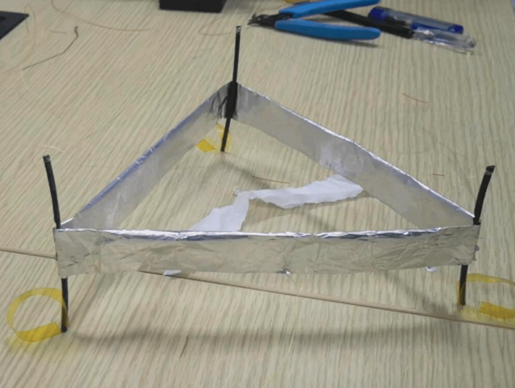 1.使用离子推进器,原理:通过离子的加速栅极,产生微弱的离子风。 运用该原理使用高压发生器的正极连接一根铜丝,负极连接一片铝箔纸 (如图所示,可轻微飞起)。