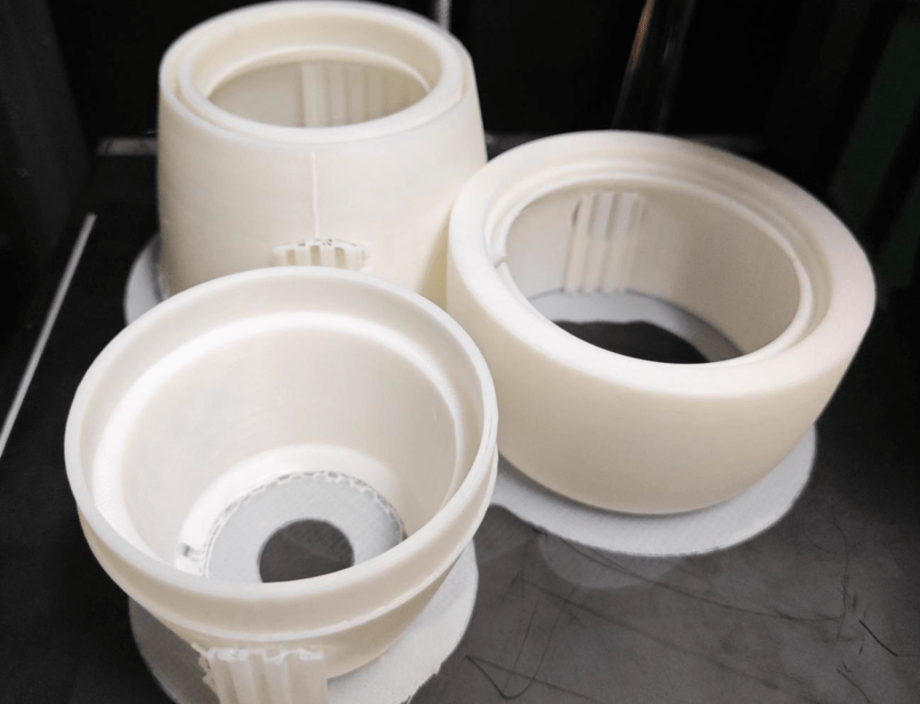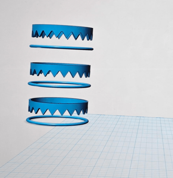 使用 3D 打印机的 123d 软件制作模块化发动机的轮廓,在谷歌上参考文 献,采用了 3D 打印环形锯齿结构作为高压发生器正极介入导体用环状 金属连接负极在此基础上做三段进行加速。
