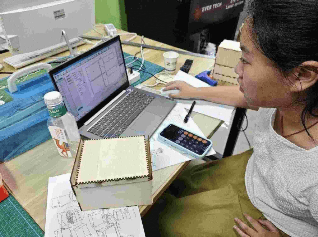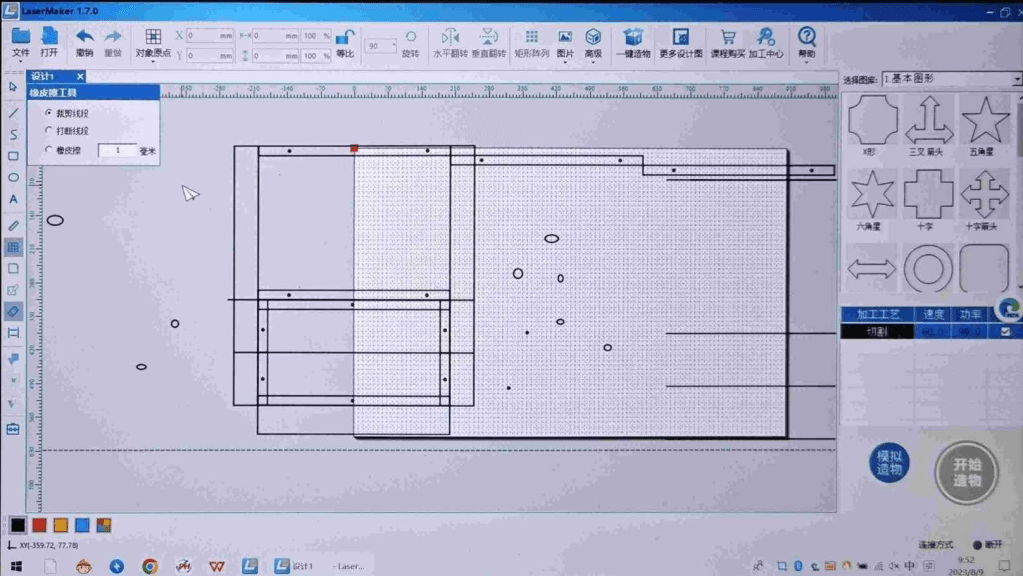 6.绘制亚克力前板的平面图,确定电子元器件的位置,并切割,尝试组装